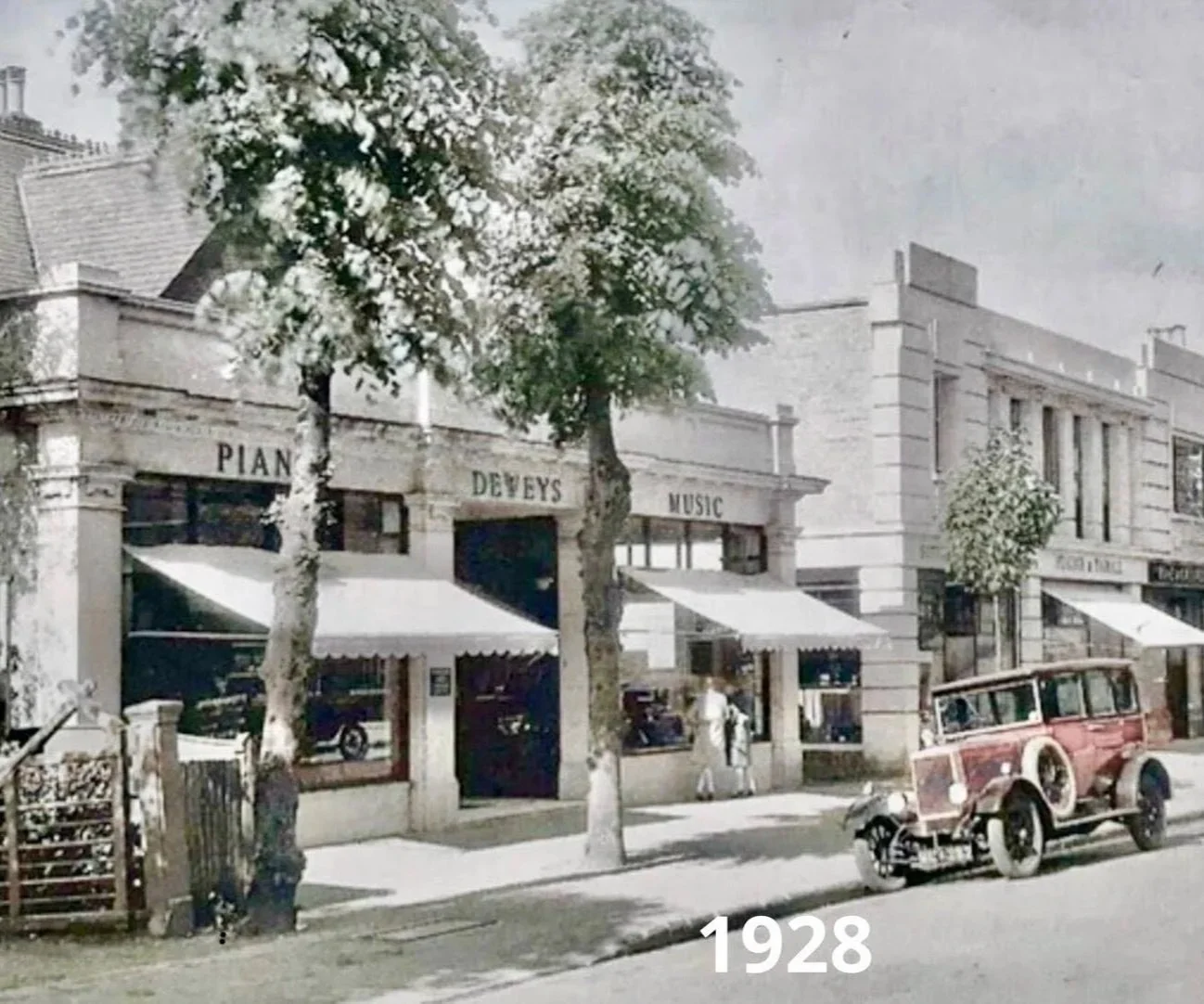 Pictured are the trees outside Deweys, the music shop Phil’s grandfather managed in Grove Road, Sutton, Surrey outside London. The trees were gone by the late 1950s - Phil’s earliest memories. But the shop, a department store of a kind, was still kicking goals, even if time was soon to be called on it too. There were musical instruments and sheet music as well as vinyl records with, in the window, a neon-lit Top 20 billboard, changed each week. And on the first floor, music tuition. Four lines of business, all related and all offering quality service, with lasting impacts for customers.